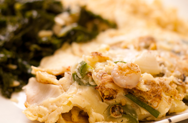 2. Add green onions, seafood (I used the ready-mixed frozen kind and defrosted it in the fridge overnight), and jalapeno. Mix until combined.