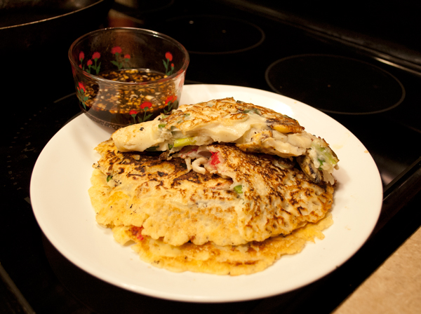 I tried one of these at a fantastic Korean restaurant in Toronto and immediately fell in love. This recipe is a mangling of two recipes, one from Maangchi (my usual go-to for all Korean recipes and quite possibly the most comprehensive recipe/how-to site in the universe) and the Kitchn, but I basically just used their sauce recipe. I’m not going to pretend that this is at all authentic. I’m Chinese and struggle to make authentic Chinese food as it is. This is just my version of the dish with what I had in my house.